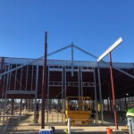 The construction crew has been hard at work to reach the finish line of our NEW SHELTER! While there is still a long way to go, each step is a new milestone to be excited about. The crew is waiting on their delivery of plywood this week, and then they are ready to roll, installing the roof trusses. You can see in the photos below, the entrance to our shelter has been framed and if you look closely, you can see our signed beam!