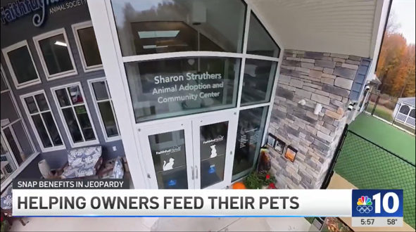 “Our Pet Food Bank is often the difference between a family keeping their pet or having to surrender them due to financial hardship,” said Jane Pierantozzi, Executive Director of Faithful Friends Animal Society. “We rely 100% on community donations to keep this program running.”