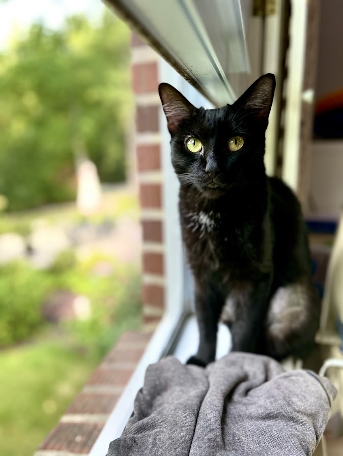 Girlfriend is a sweet, affectionate young adult cat who was rescued as a stray. She quickly bonded with me and loves human companionship — she greets with soft meows, rubs, and happy purrs. She’s also playful, curious, and enjoys exploring her environment.